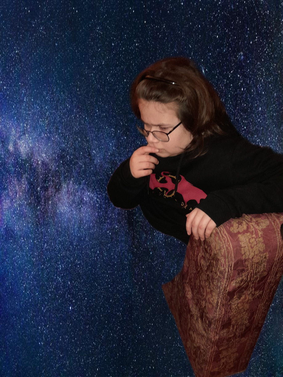 Mon aide mémoire, c’est une fée qui tient une ventouse et oui, ceux qui me connaissent savent que mon sens de l’humour est très prononcé. Bref quand je me dis "je suis nulle mon texte est nul je n’y arriverais pas’ et bien je la regarde et je me dis: "ne t’inquiète pas tu vas y arriver !" J’ai aussi parfois l’idée d’être une imposteuse alors j’ai nommé la voix dans ma tête Alister et parfois je l’insulte, je lui dis de se taire, je regarde ensuite la fée et je me sens mieux. Une dernière question pour la fin: